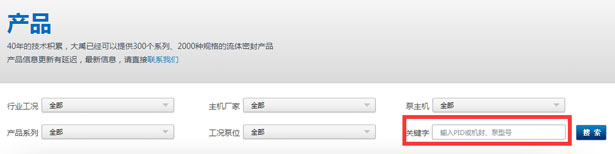 您可通過大禹網站的産品項進行行業工況、主機廠家、産品系列、工況泵位篩選尋找機械密封型号