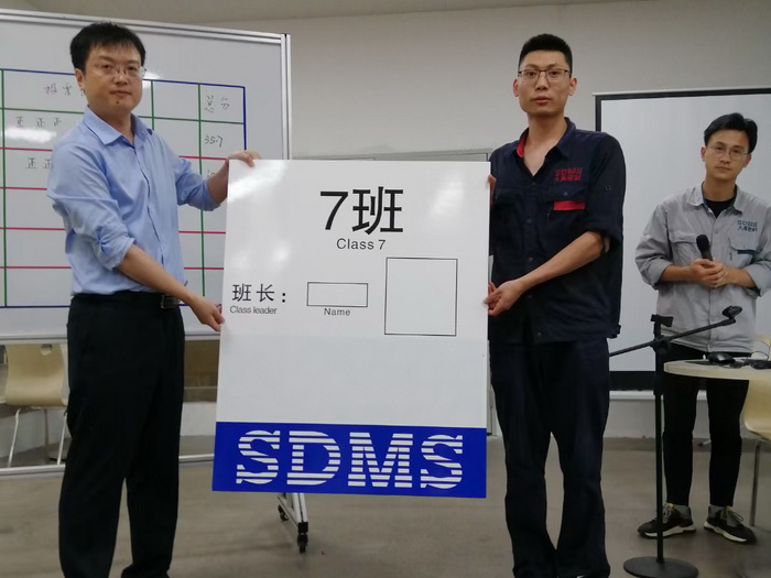 2022年6月23日,公司交付中心舉辦了“班長競聘會”,會後公司總經理倪明爲新組建的“機加7班”授牌。